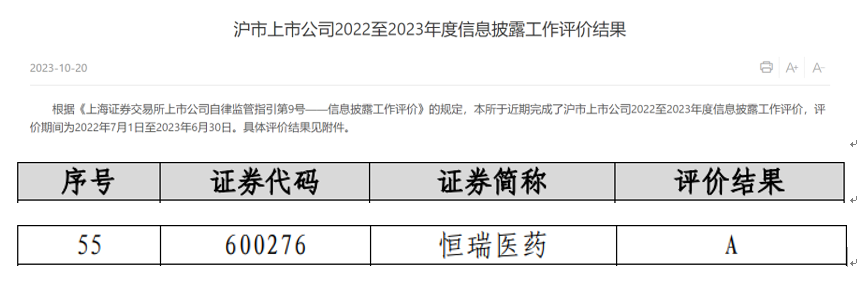 Ag尊龙凯时医药荣获上交所信息披露考评A级